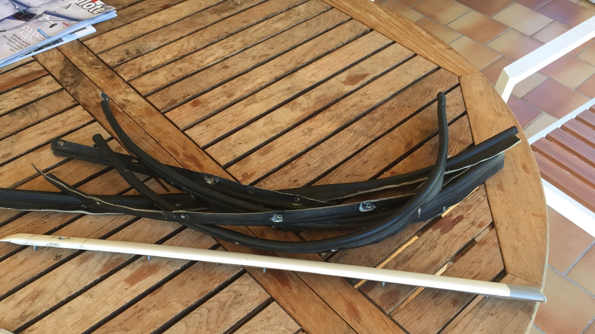 Puisqu'on parle de masse, j'ai pesé les anciens joints de portes, la visserie qui a maintenant disparue et la baguette centrale longitudinale qui vient recouvrir les deux panneaux arrières en plexi (panoramiques) et qui prend en sandwich le plexi avec l'armature.
